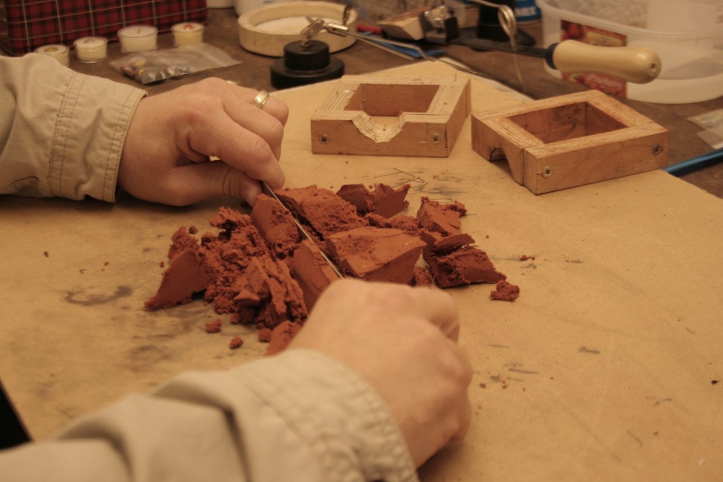 Be careful as you pull apart the casting rings/set as an error now means you have to start at the beginning again. Delft clay is quite soft and you could quite easily damage the imprint you make.